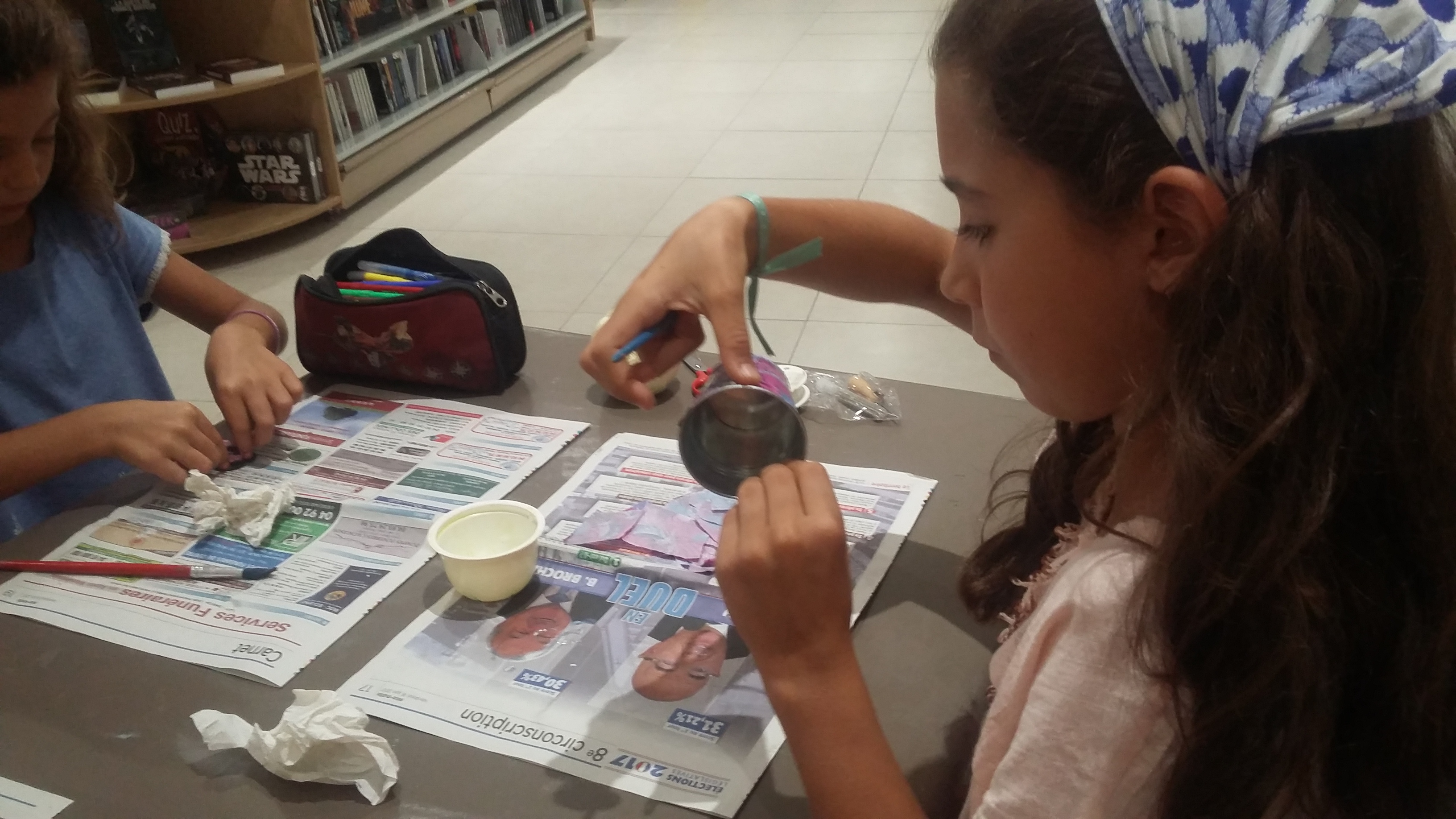 Tags : activité manuelle enfant, atelier créatif enfant, boule de polystyrène DIY, colle, ficelle, Forum Arts & Livres de Mouans-sartoux, Grasse, Mougins, papier Décopatch, petit seau en alu .