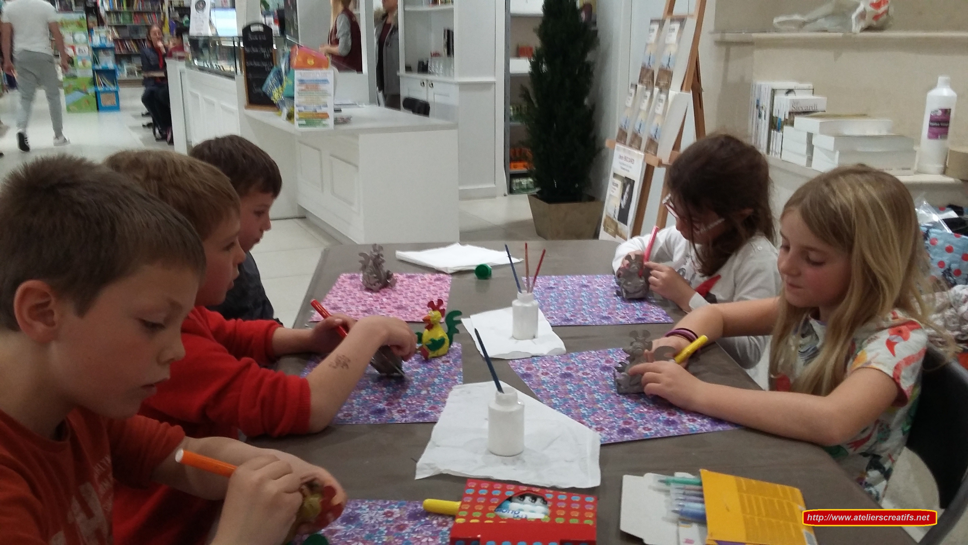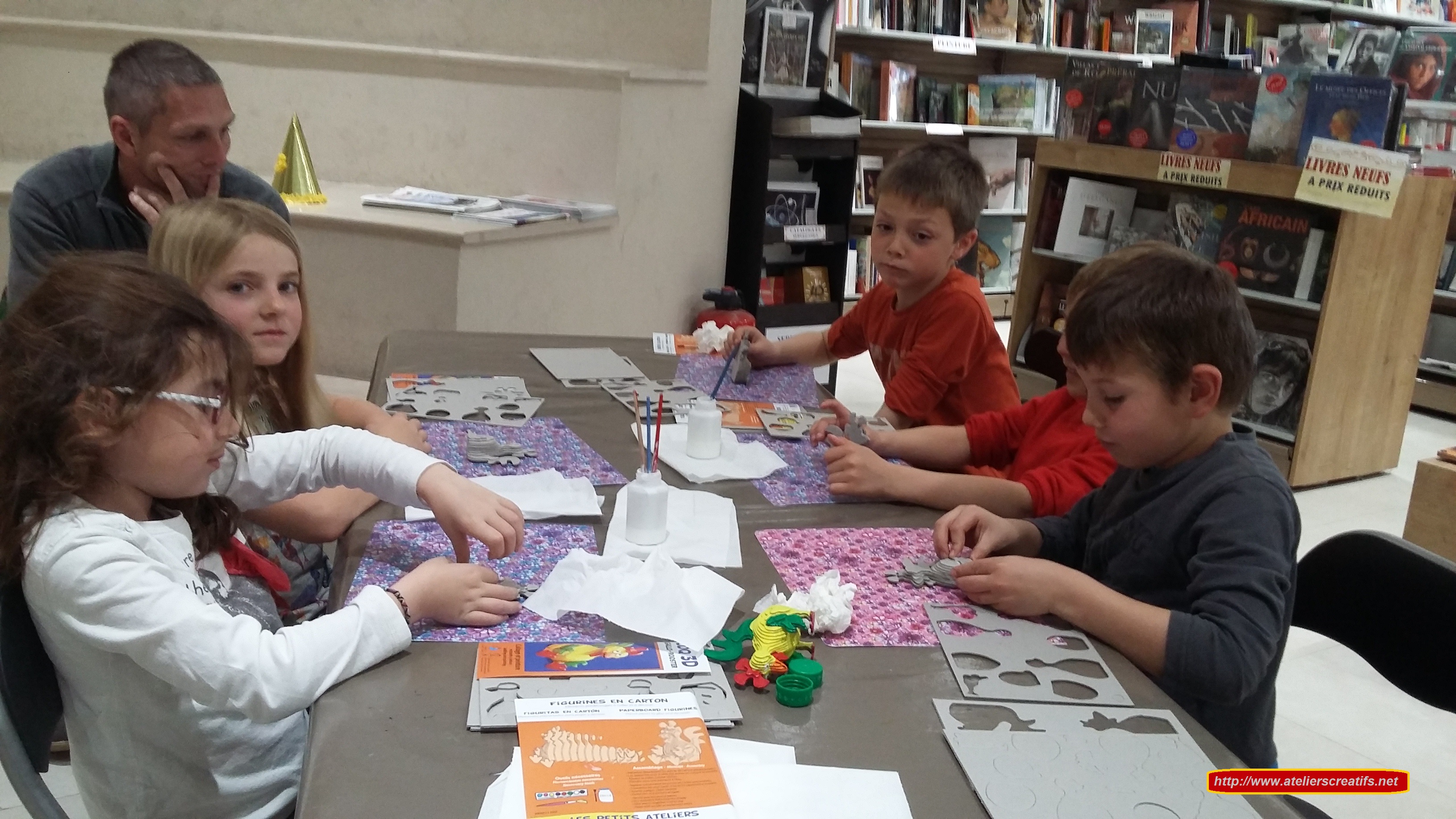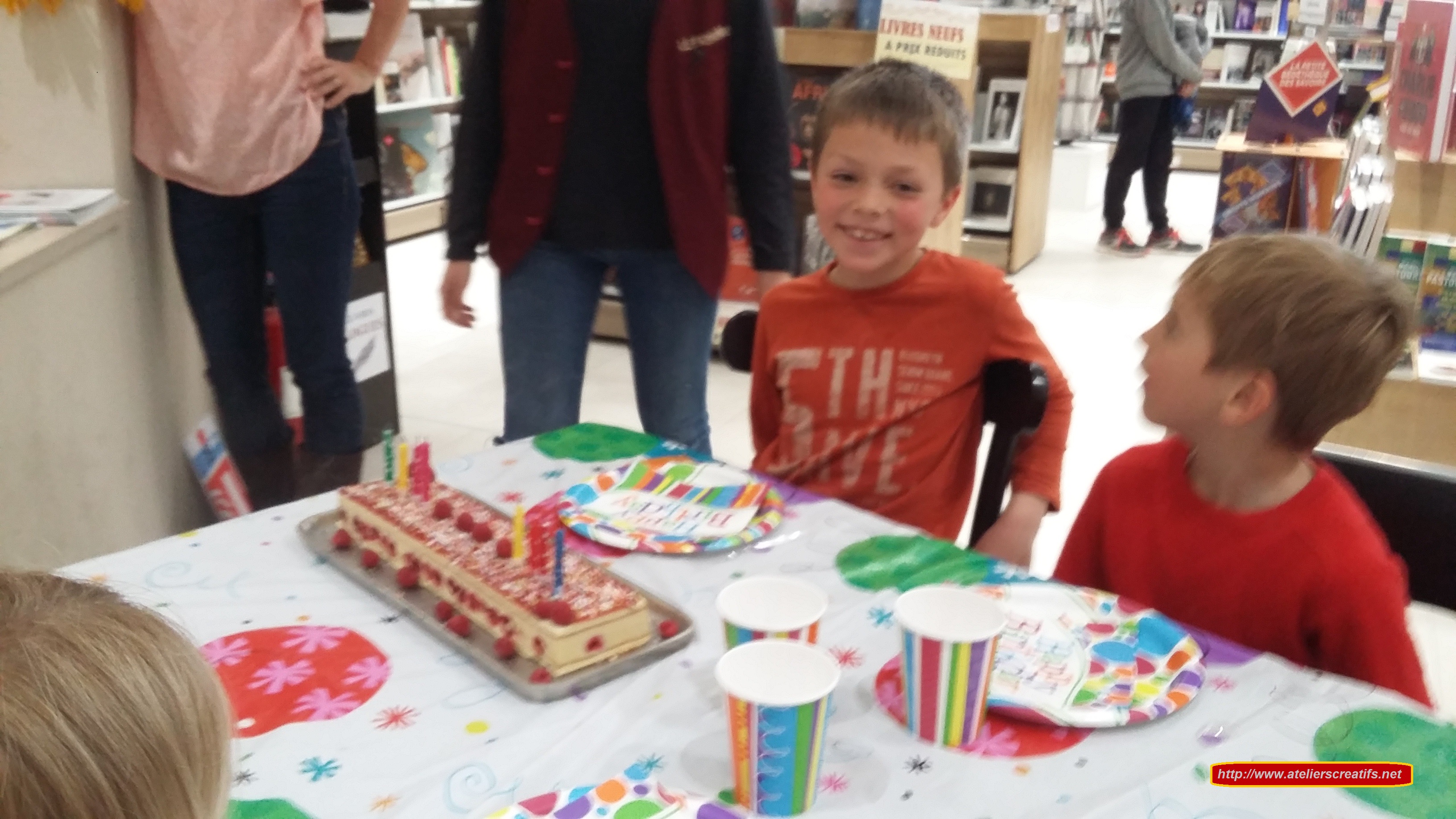 C’est au Forum Arts & Livres de Mouans-Sartoux que Louka est venu fêter son anniversaire (8 ans) avec ses copains et copines. Il y avait Glenzo ( 7 ans), Isla ( 7 ans), Hugo (6 ans et demi) et Amélia ( 6 ans et demi). L’activité choisie était les animaux en 3D puis est venue l’heure du goûter avec boissons, gâteau Framboisier, gâteau de bonbons et remise des cadeaux. Les enfants ont passés un très bon moment ensemble. Voici les photos de l’anniversaire: